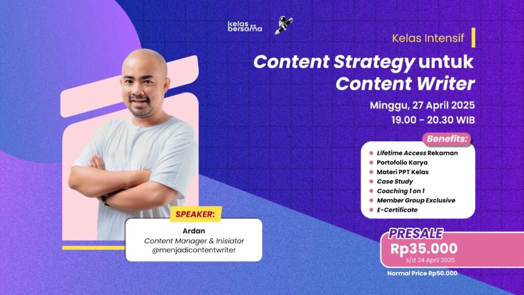 Kalau kamu lagi kepo soal dunia content writing, pasti sering dengar istilah “content strategy” kan? Tapi… sebenernya, apa sih content strategy itu? Dan kenapa penting banget buat kamu yang pengen jadi content writer atau ngurusin media sosial/web?